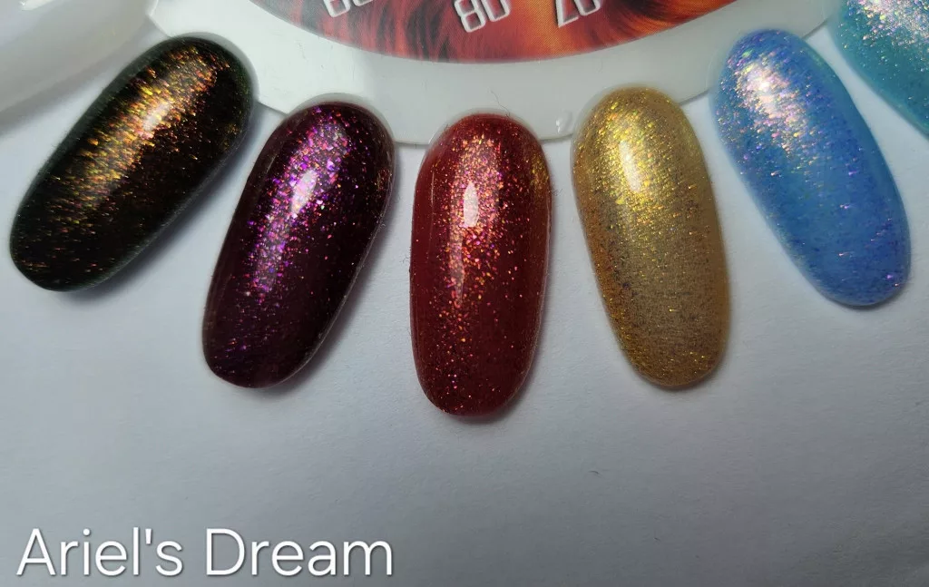 Ariel's Dream gél lakk este moderat pigmentat, cu 3 pași și densitate moderată, se acoperă frumos în două straturi și are o rezistență mare la uzură. Prin utilizarea sa, este garantată o combinație între rezultatul perfect și aspectul fantastic.