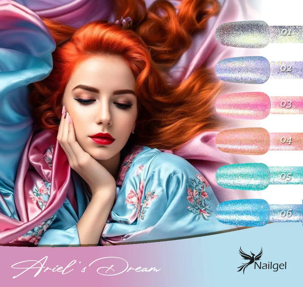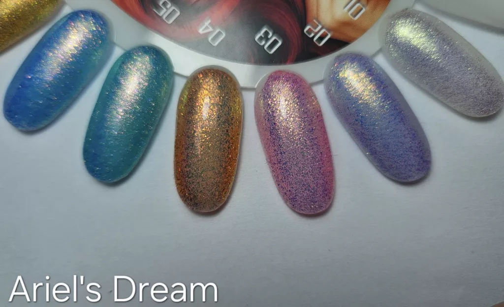 Ariel's Dream gél lakk este moderat pigmentat, cu 3 pași și densitate moderată, se acoperă frumos în două straturi și are o rezistență mare la uzură. Prin utilizarea sa, este garantată o combinație între rezultatul perfect și aspectul fantastic.