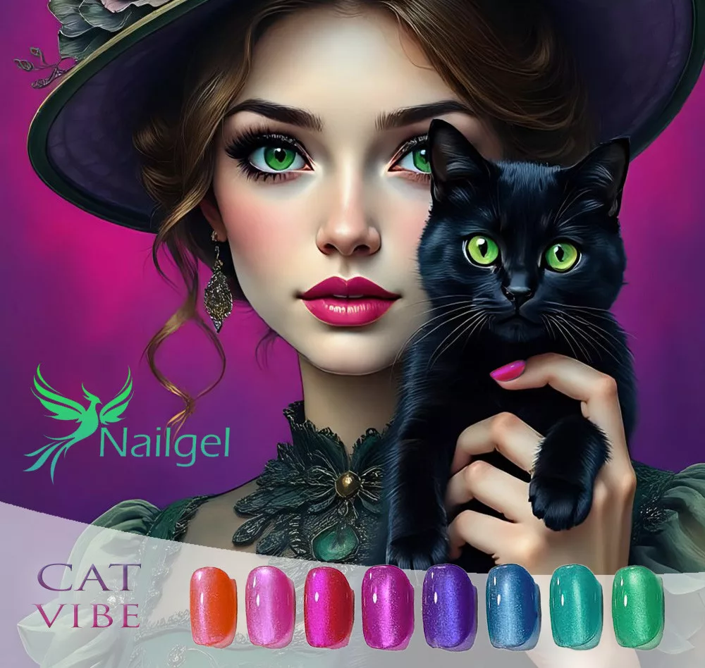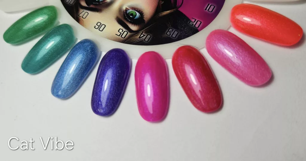 Colecția Cat Vibe a fost creată special pentru acoperirea completă a unghiei și realizarea decorurilor magnetice. Pigmenții magnetici speciali prind viață cu ajutorul magnetului, creând modele spectaculoase cu efect ochi de pisică. Cu nuanțele sale proaspete și vibrante de primăvară, poți crea o manichiură cu adevărat specială.